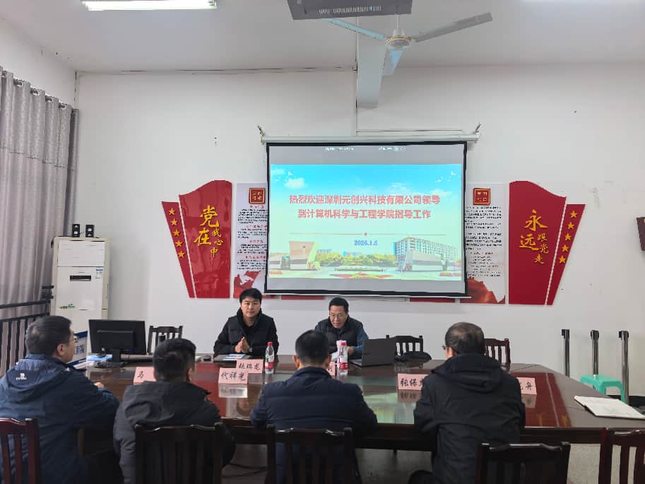 1月5日上午,深圳元创兴科技有限公司董事长杨伽利、成都分公司负责人张瑞龙应邀到访437437必赢国际。学院院长李洪兵、副院长代祥光及教师张保杰、马龙、曹龙舟在慎思楼三栋405会议室与来访嘉宾进行了交流,双方围绕产教融合、校企合作及科学研究进行了有益的探讨。
