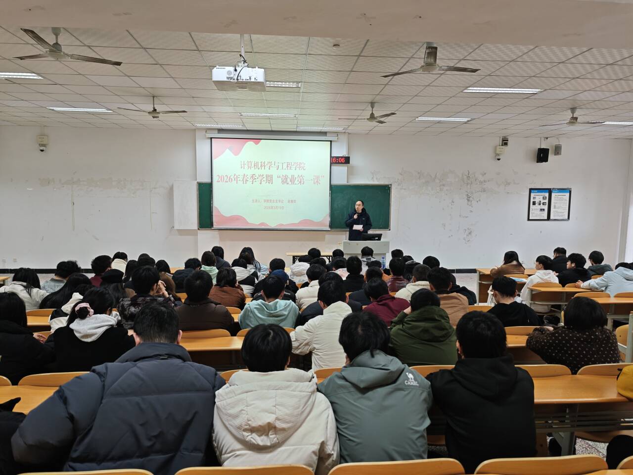 聂祥飞结合当前就业形势与计算机学科特点,对2026届毕业生提出三点殷切期望。一要胸怀大局,在国家战略中找准定位。要主动将个人理想融入国家数字经济发展战略,到祖国最需要的地方建功立业,实现更高层次的人生价值。二要练强内功,在持续学习中筑牢根基。始终保持终身学习的态度,在实践中不断巩固专业基础、提升实践能力、培养创新思维,铸就能适应任何环境变化的“硬核”本领。三要明辨笃行,在积极求职中行稳致远。主动把握春招关键期,科学规划求职路径,切实增强风险防范意识,辨别信息真伪,保护自身合法权益。